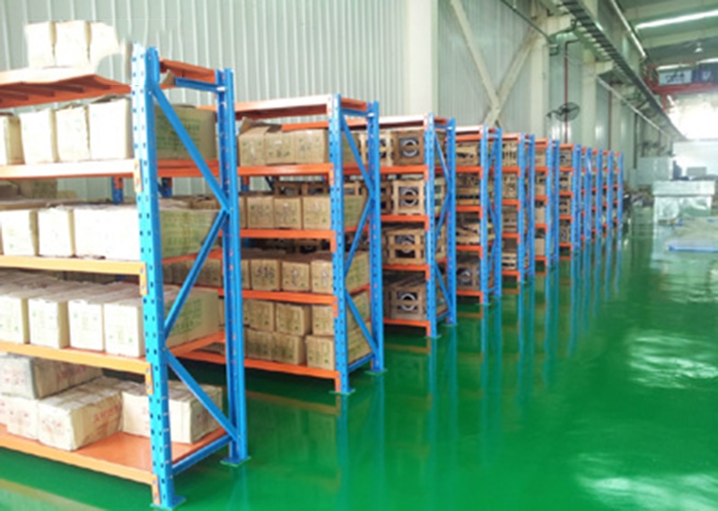 中型仓储货架常规颜色:蓝色,桔红色,灰白色。(可根据客户指定颜色生产)