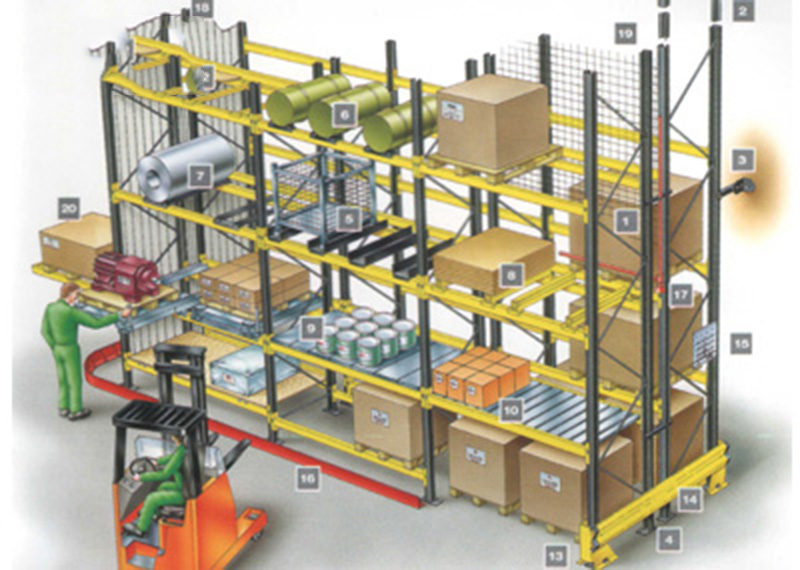 一般是由两根立柱+几根横拉+几根斜拉组合而成,再通过横梁连接。重型货架一般都是用叉车来操作的,难免会碰到重型货架的立柱,这时立柱保护器就起到了作用,避免重型货架受到更大的冲击而受损。