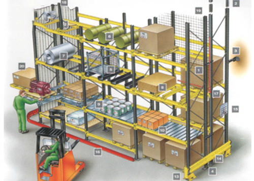 5、一般都是采取机械设备来进行存取货物,有堆高车、登高梯或者是叉车等。