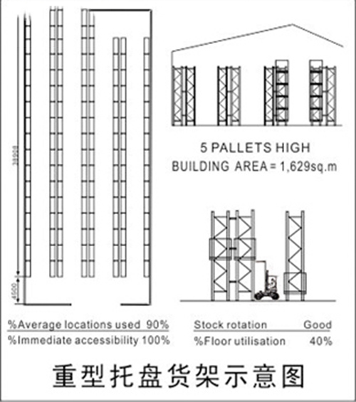 1、货架可以单独使用也可以用主副架形式组合安装,横梁式可以铺上钢层板或者是木板,也可以什么都不铺,直接用托盘承载货物,在放置在货架单元内,每个单元内限放4000公斤的货物;